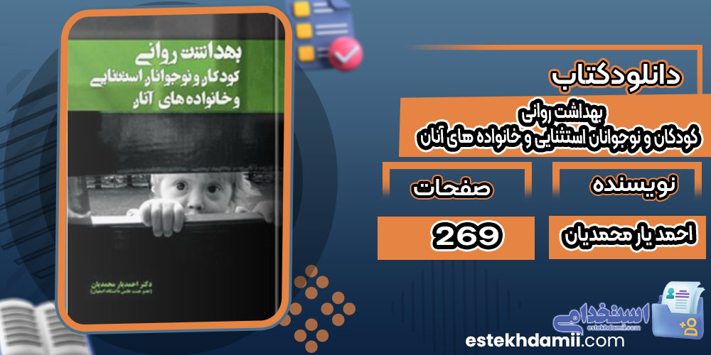 خرید کتاب بهداشت روانی کودکان و نوجوانان استثنایی و خانواده های آنان pdf به شما این امکان را می‌دهد که با چالش‌ها و نیازهای روانی کودکان و نوجوانان با نیازهای ویژه آشنا شوید. این کتاب با ارائه راهکارهای عملی و علمی، به والدین و متخصصان کمک می‌کند تا به بهبود سلامت روانی این گروه ارزشمند بپردازند. با خرید این کتاب، شما به یک منبع معتبر و جامع دسترسی پیدا می‌کنید که می‌تواند به ارتقاء کیفیت زندگی کودکان و خانواده‌هایشان کمک کند.